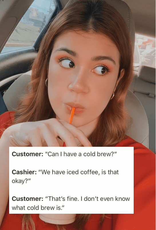 Instead of throwing a fit about not getting their cold brew, they were very laid back about it. Do they think they’re in LA or something?! They admitted that they don’t know what cold brew is, so they were fine with iced coffee. This person’s honesty is refreshing, because most of us probably don’t know the difference between cold brew and iced coffee, too. We’re just too afraid to admit it!